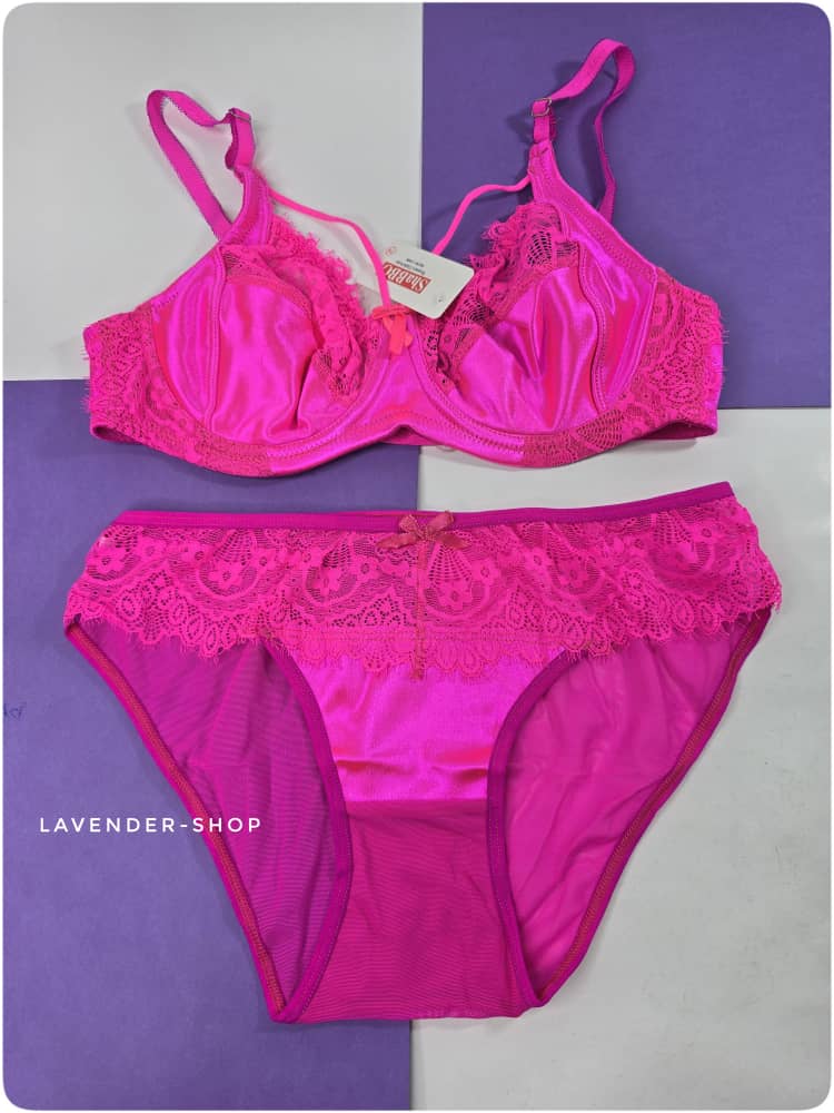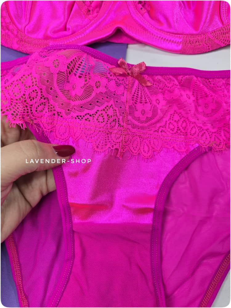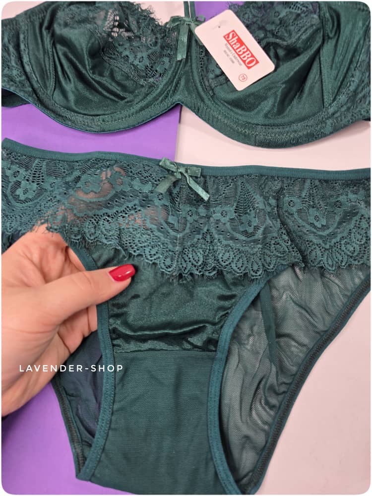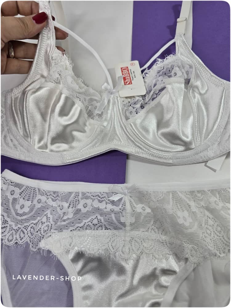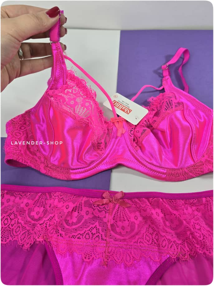 ست سوتین و شورت فنردار ساتن براق و تور زنانه برند شببو | هارنس دار