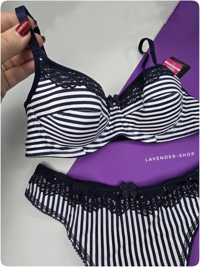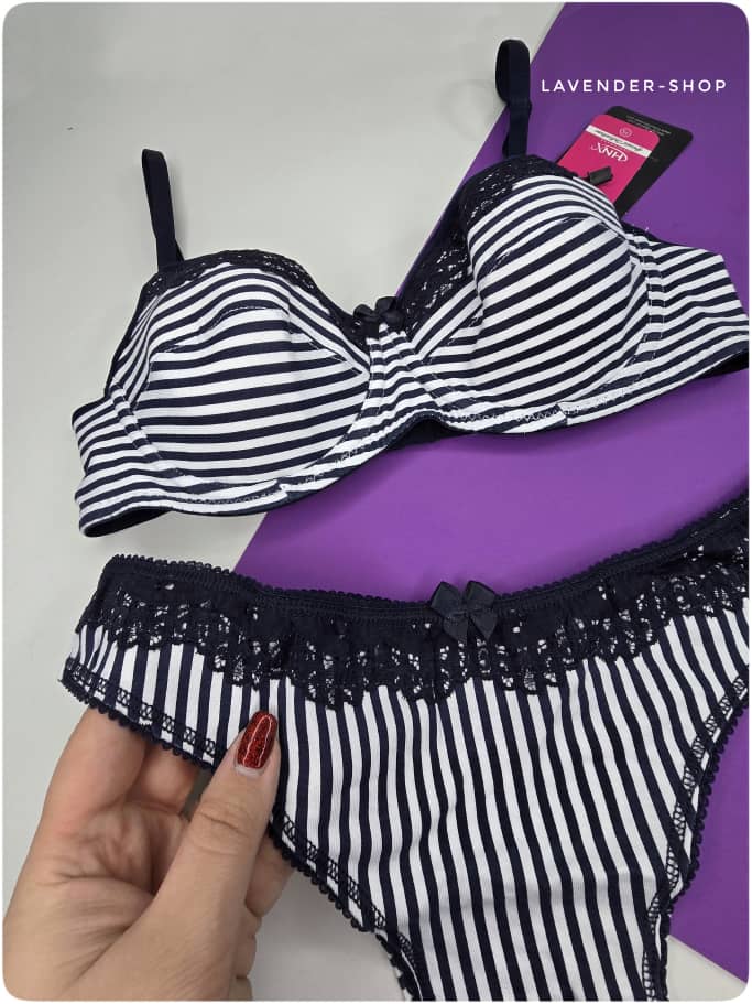 طرح راهراه عمودی کمک میکنه بالاتنه کشیدهتر دیده بشه و جزئیات ظریف بالای کاپ، جلوهای مرتب و زنانه به ست داده.