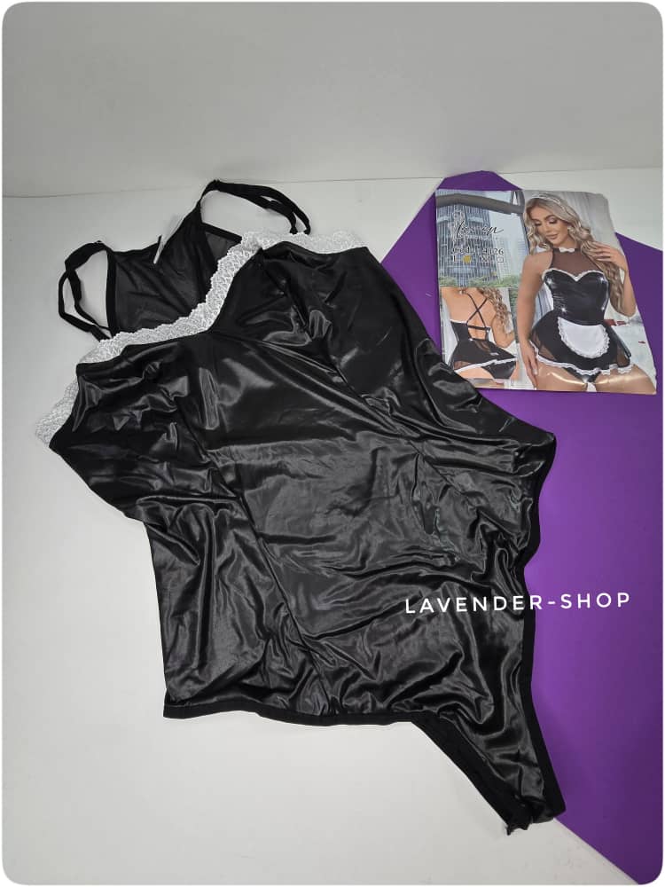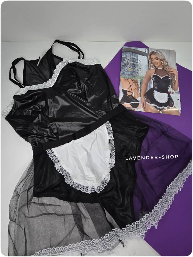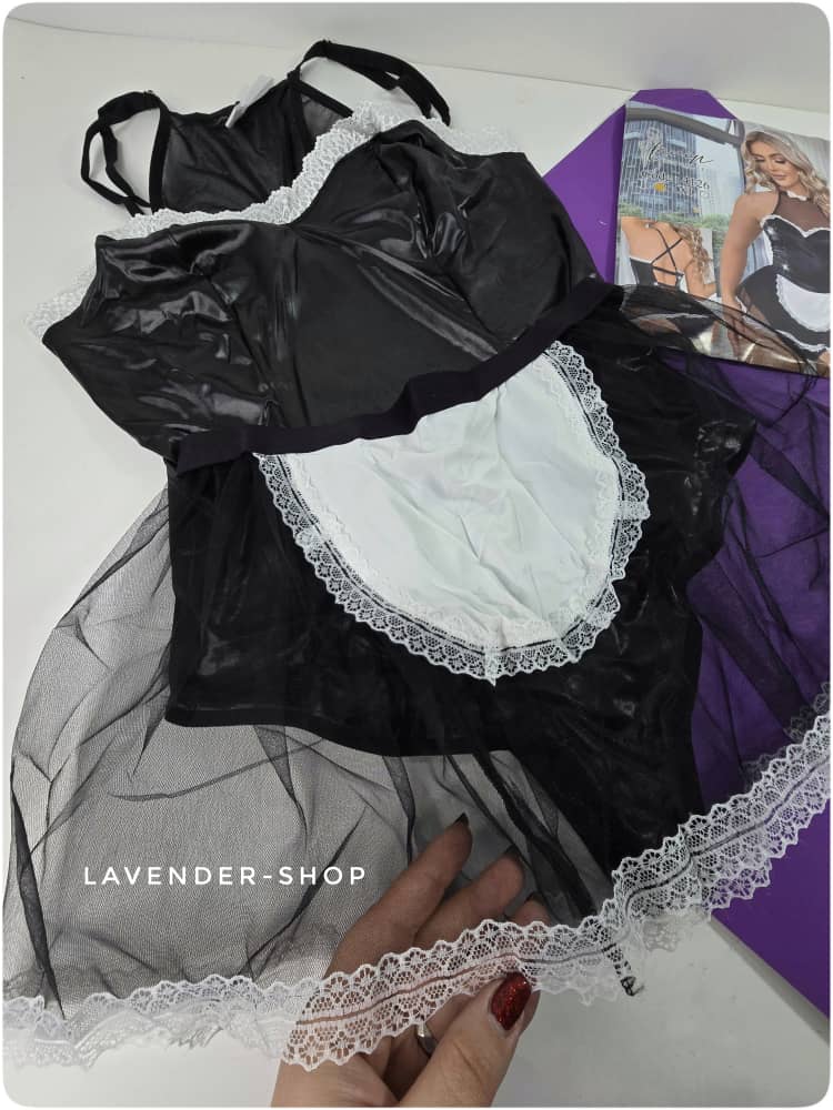 کاستوم خدمتکاری زنانه دو تکه لاتکس و تور