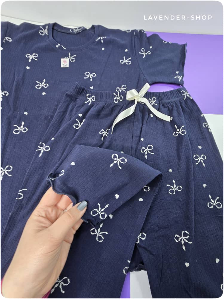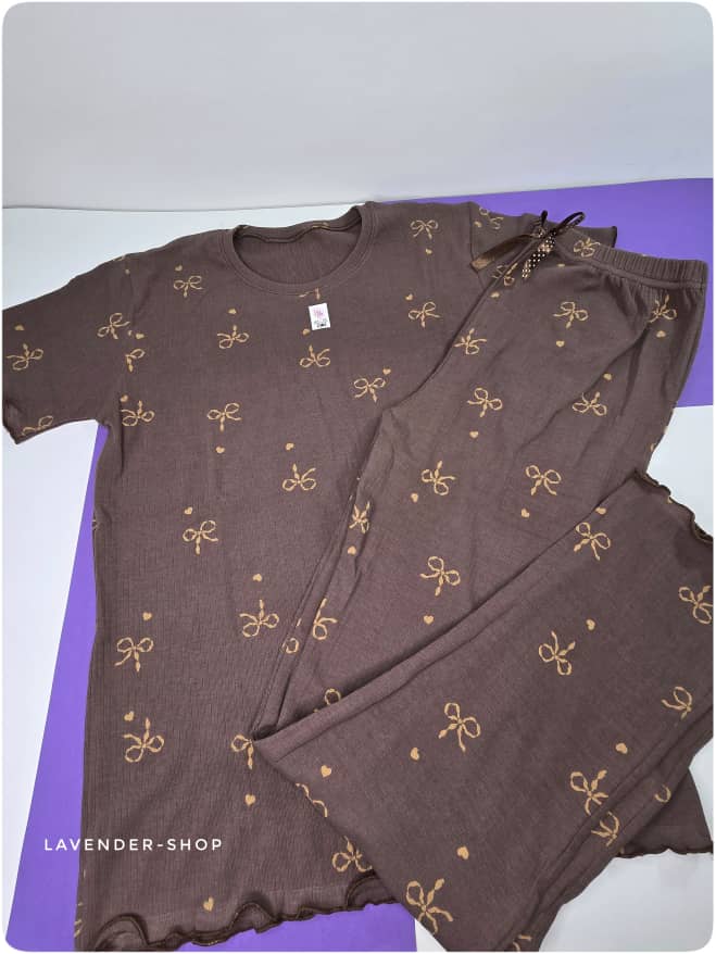 ست نخی خانگی زنانه کبریتی (تیشرت و شلوار)