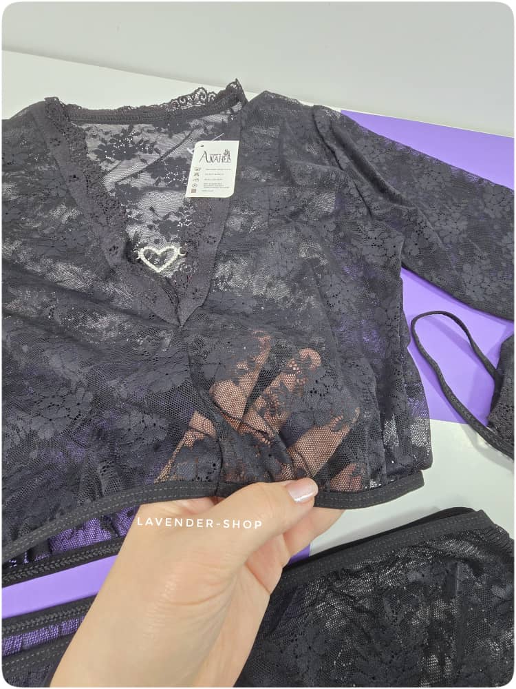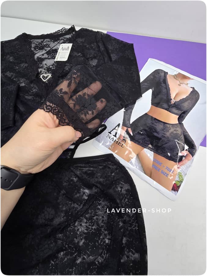 این ست لباس خواب زنانه سهتکه با طراحی ظریف و جسورانه، انتخابی خاص برای خانمهایی است که بهدنبال ظاهری متفاوت و چشمنواز در استایل خانگی خود هستند. استفاده از بافت کاملاً توری و سبک، جلوهای نیمهشفاف و جذاب ایجاد میکند که فرم بدن را زیباتر نشان میدهد و حس ظرافت و اعتمادبهنفس را تقویت میکند.