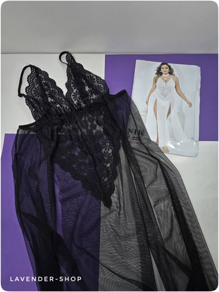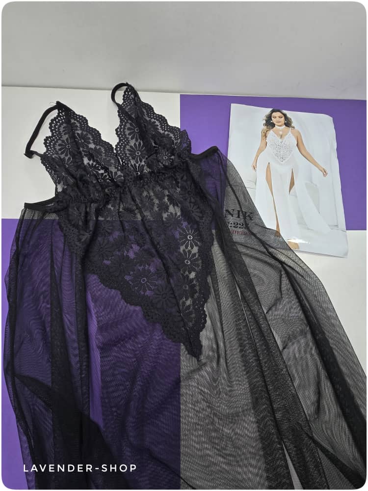 لباس خواب سایز بزرگ تور مشکی فریسایز | مدل بلند فانتزی