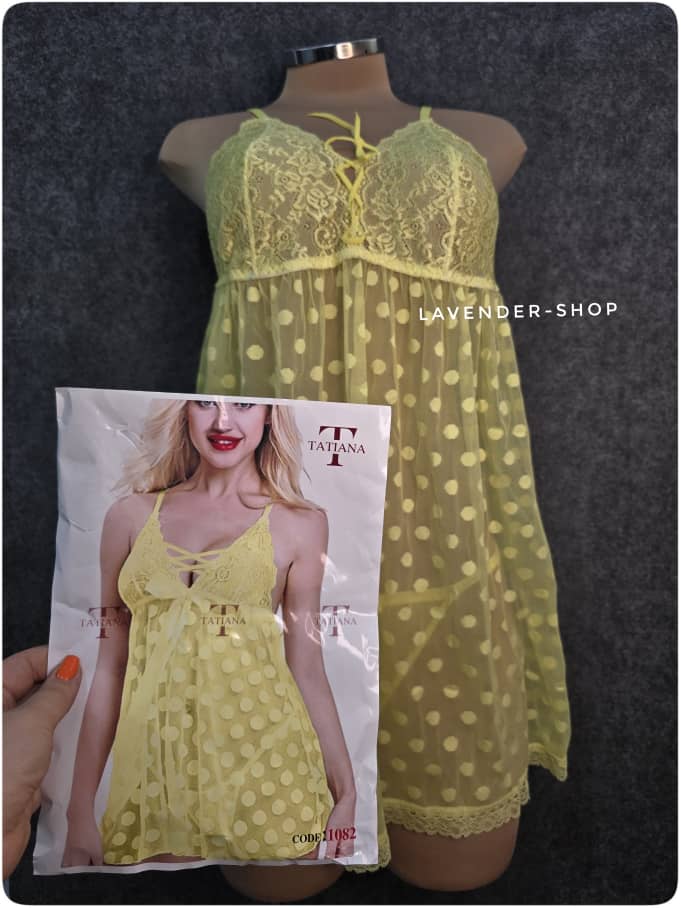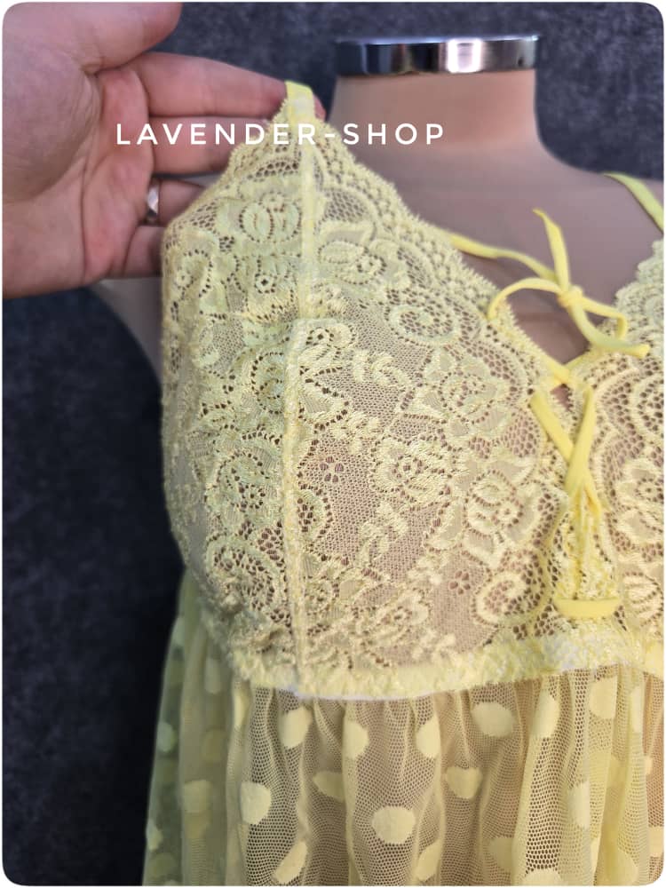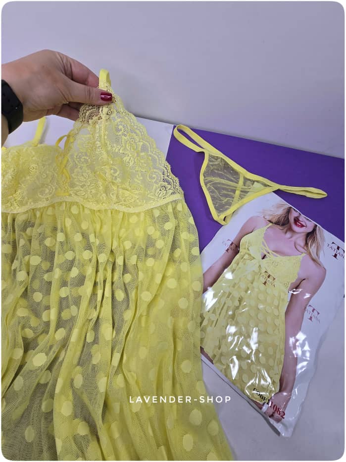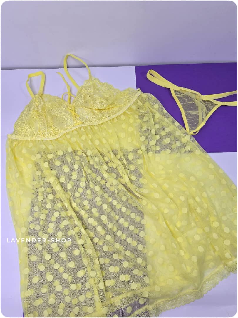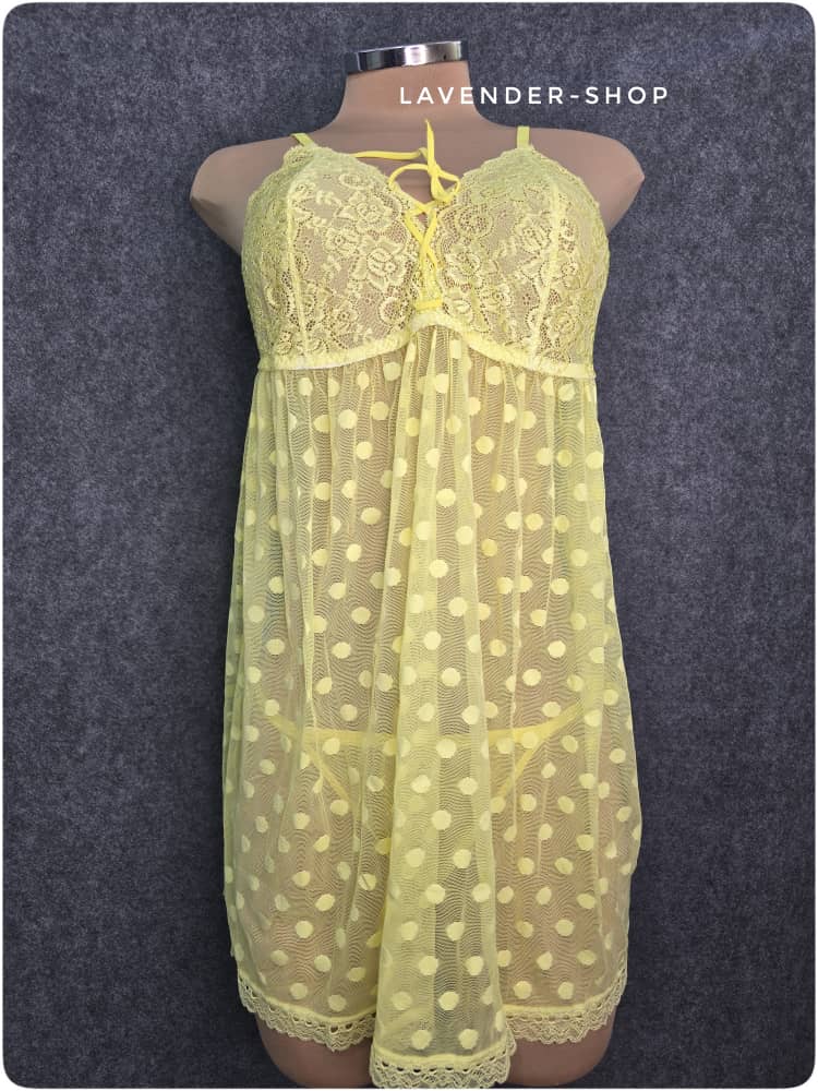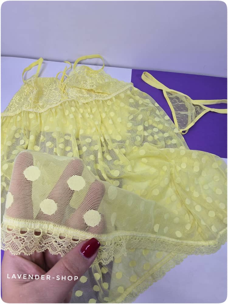 لباس خواب عروسکی توری فنردار کوتاه همراه شورت لامبادا (L–XL)