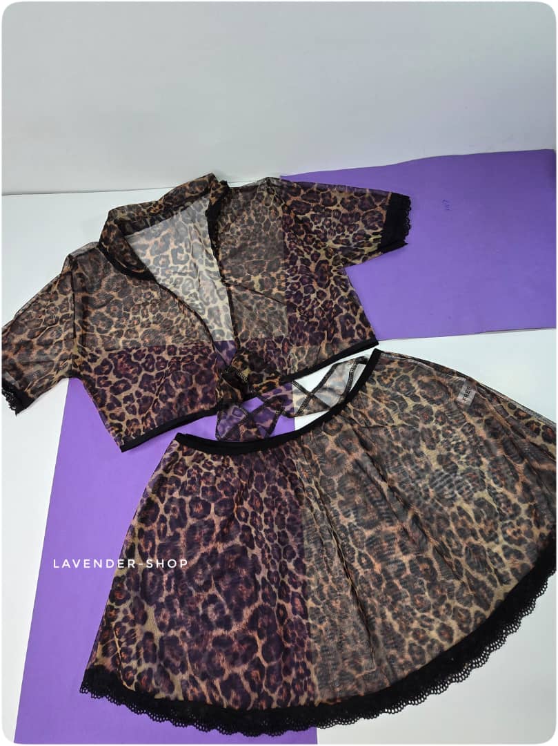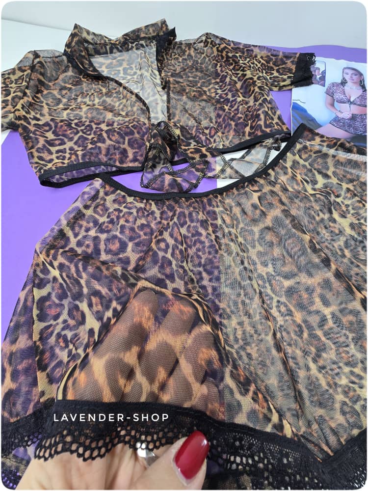 ست لباس خواب دو تکه تمام تور پلنگی برند اناهل | فری سایز