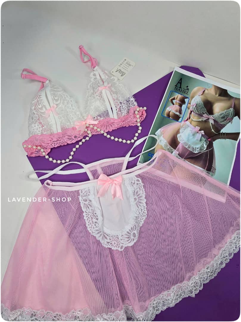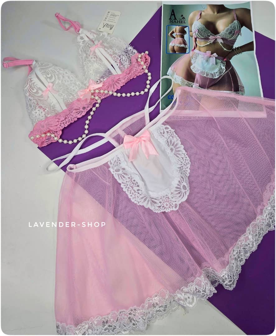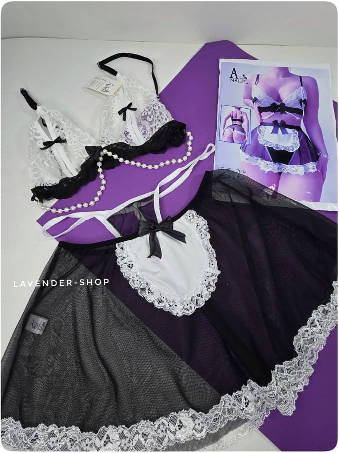 ست کامل کاستوم فانتزی خدمتکاری شامل سوتین شورت و دامن